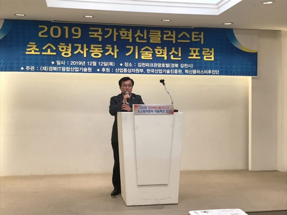 | 국가혁신클러스터 초소형 전기차 기술혁신 포럼이 12일 김천파크호텔 대연회장에서 ‘초소형 전기차 부품 기술 육성 및 방안 모색’을 주제로 개최됐다.