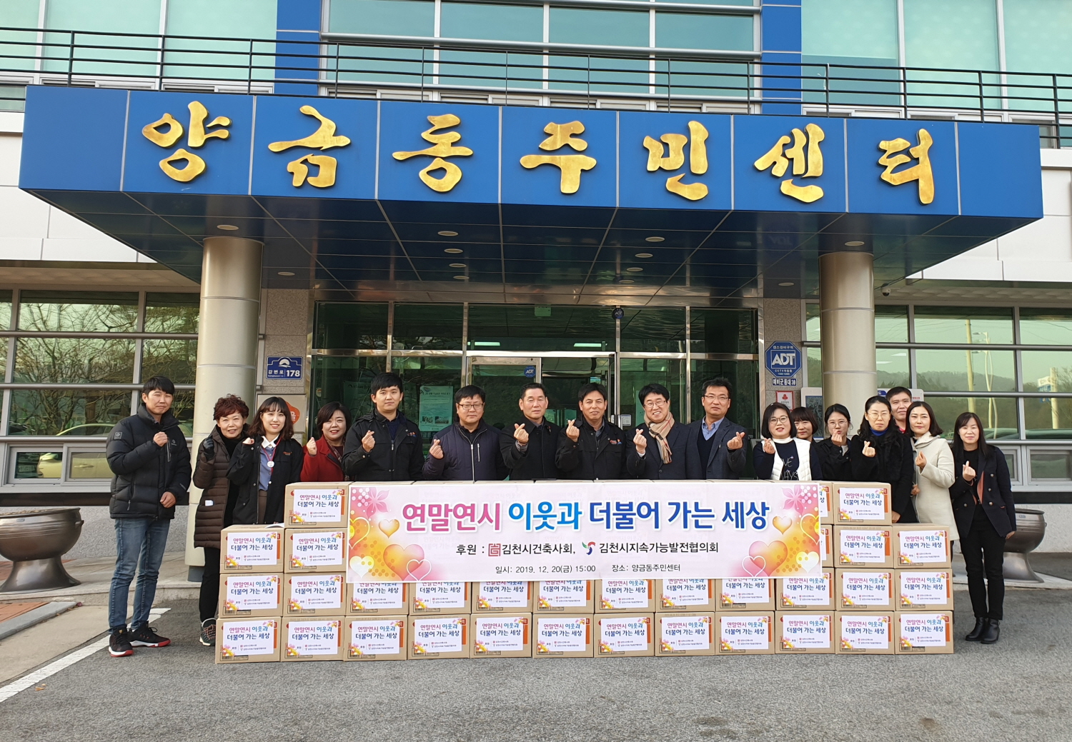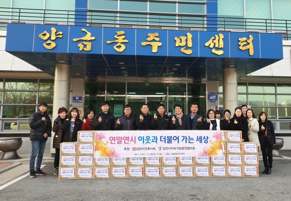 | 김천시지속가능발전협의회(회장 강종석), 김천시건축사회(회장 송동훈)는 지난 12월 20일 양금동주민센터를 방문하여 지역 내 소외계층에게 전달해 달라며 라면 48박스(100만원 상당)를 기탁했다.