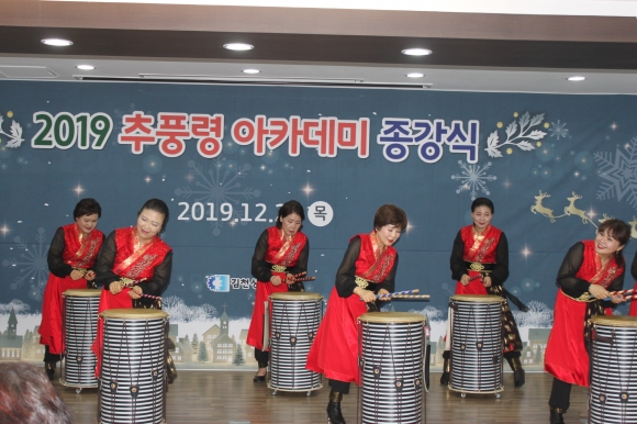 이날 추풍령아카데미는 난타공연, 시낭송, 노래자랑, 마술공연 등 수강생들이 준비한 다채로운 공연과 장기자랑 등을 통해 평소에 갈고 닦은 재능과 노력을 수강생들과 공유하며, 즐겁고 유쾌한 자리가 됐다.