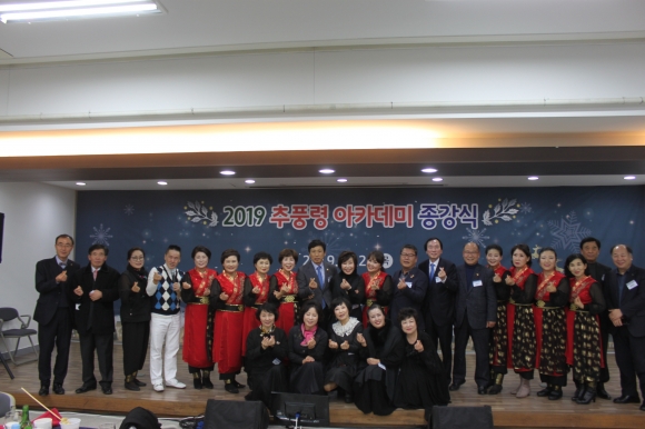 이번 종강식에는 김충섭 김천시장, 김세운 김천시의회 의장, 백성철 김천시의회 부의장, 박판수 도의원, 전계숙 시의원, 박보생 전 시장 등 주요 기관·단체장과 기업체 임직원과 시민 등 200여명이 참석해 입추의 여지가 없을 정도로 자리를 가득 매웠으며, 지난 2016년 창립총회를 갖고 2017년부터 3년을 이어온 추풍령아카데미 전과정을 되돌아보는 자리로 마련되어 수강생들끼리 어울리는 한마당 잔치가 됐다.