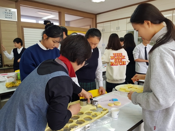 본 행사는 ‘학부모와 함께 하는 케익 만들기’, ‘은행원의 생활’, ‘꿈, 희망, 미래설계’, ‘감사’, ‘효와 공경’이라는 주제를 가지고 마을교사들이 지금까지 살아오면서 겪었던 경험과 직업인으로서 가져야 할 마음자세 등 삶이 묻어나는 진솔한 이야기를 학생들에게 들려주었다. 이를 통해 학생들은 자신들의 꿈과 진로에 대한 구체적인 비전과 계획을 세울 수 있는 유익한 시간이 되었다. |