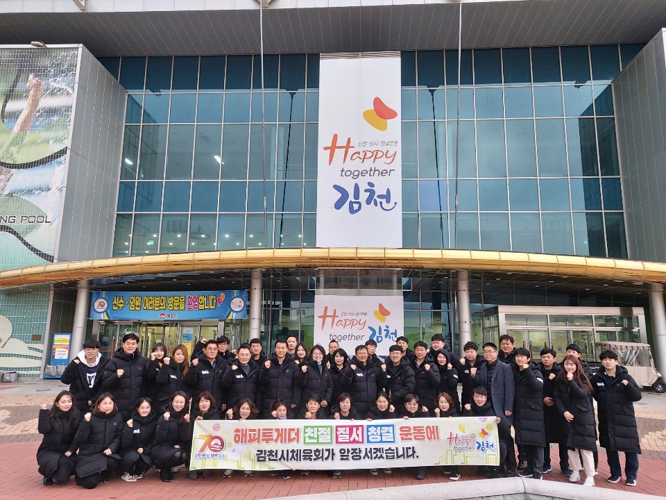 | 김천교육지원청(교육장 마숙자)은 12월 26일 2019년 김천 체육발전을 위해 노력한 초중고 운동부 운영학교 코치진과 김천시체육회 코치진을 격려하는 패딩 전달식에 참여하였다. 이날 행사에는 운동부 운영학교 지도코치 22명과 김천시체육회 소속 지도코치 17명, 김천시체육회 관계자들이 참석하여 자리를 빛냈다. 이날 전달된 패딩은 김천시체육회 황정상 상임부회장이 마련한 것으로 모든 코치진은 따뜻한 겨울을 맞게 되었다.