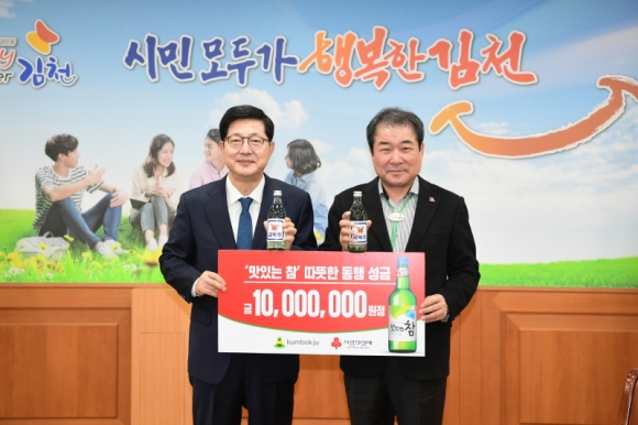 | ㈜금복주(대표이사 이원철)는 지난 23일 김천시청을 방문하여 이웃돕기 성금 1천만원을 전달했다.