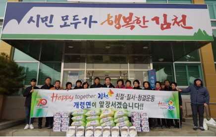조춘제 개령면장은 “2019년의 마지막까지 Happy together김천 운동 추진을 위해 노력해주신 자유총연맹개령면분회 회원들에게 감사의 인사를 드리며, 나눔 문화가 더욱 확산돼 더불어 사는 사회가 되도록 행정에서도 적극 노력하겠다.”고 말했다. |