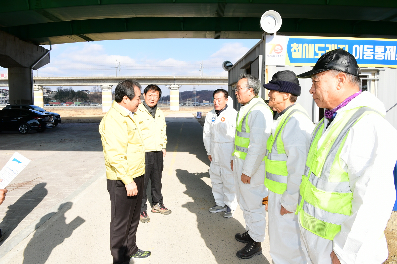| 김충섭 김천시장은 경자년 새해첫날 악성가축 전염병(구제역, AI. ASF) 발생이 없는 청정김천 사수를 위해 차단방역 현장을 방문 초소근무자를 격려 하고, 차단방역대책 추진상황을 점검하였다.