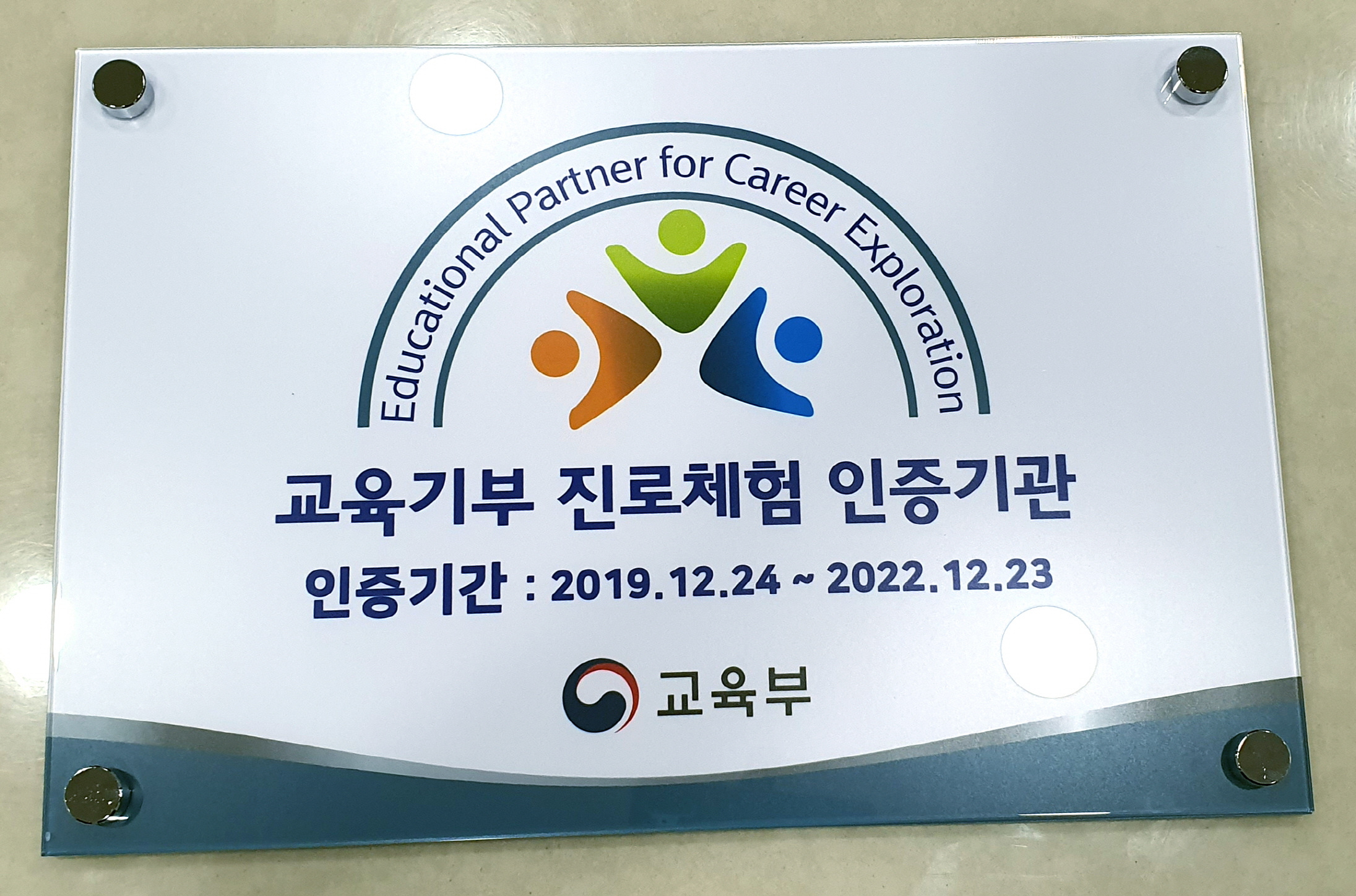 ‘교육기부 진로체험기관 인증제’는 초·중·고등학생들에게 양질의 진로체험을 무료로 제공하는 체험처를 대상으로 교육부와 대한상공회의소 심사를 통하여 인증을 부여해 진로체험의 질을 관리하기 위해 마련되었다.