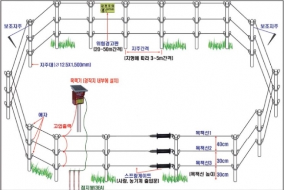 야생동물 피해예방을 위한 철망 울타리 및 전기충격식 목책기 설치를 희망하는 농가는 접수기간(2월3일 ∼ 2월24일) 중에 농지소재지 읍‧면사무소 및 동 주민센터에 신청서를 제출하면 된다.
