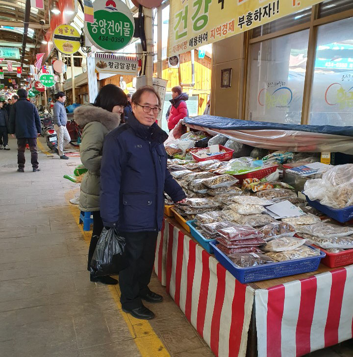 | 김천시(시장 김충섭) 상하수도과에서는 설 명절을 맞이하여 경기침체로 어려움을 겪고 있는 골목상권과 소상공인들에게 도움이 되고자 지난 15일 황금시장을 방문하여 전통시장 장보기 행사를 추진하였다.