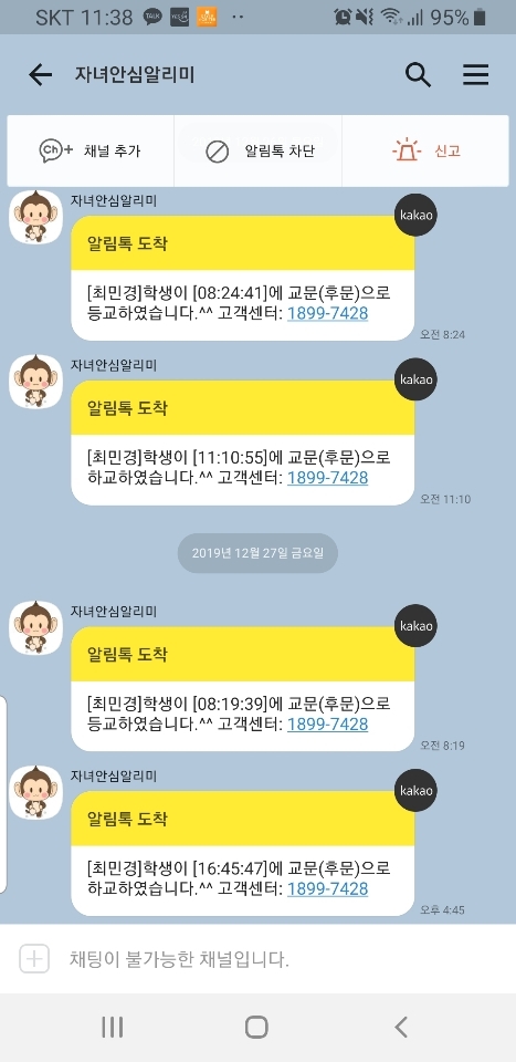 안심알리미 서비스는 학생들에게 지급된 전용 단말기를 통해 자녀가 학교에 안전하게 등․하교 했는지를 학부모들에게 문자로 알려주는 서비스로 초등학생들을 각종 범죄로부터 안전하게 보호하는데 목적이 있다.