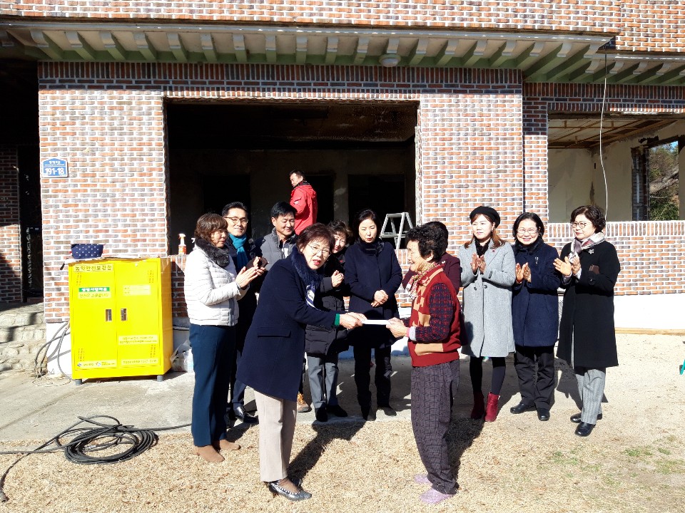 | 김천시여성단체협의회(윤청자)는 지난 21일 구성면 화재 가구를 방문하여 성금 100만원을 전달하였다. 이번 성금은 김천시여성단체협의회 14개 단체에서 모두의 마음을 모아 따뜻한 나눔을 실천하게 되었다.