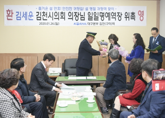 김세운 김천시의장, 일일명예역장으로 귀성객 맞이