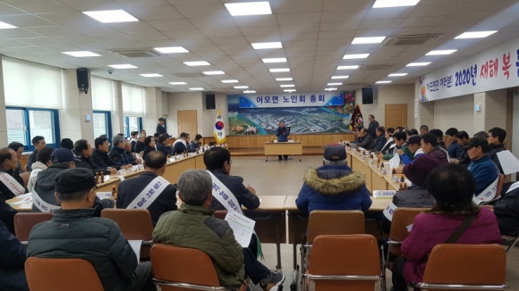 | 어모면(면장 이병헌)에서는 29일 면사무소 2층 회의실에서 편재관 어모면노인회분회장, 임덕수 대한노인회 김천시지회 사무국장, 김세운 시의장, 진기상 시의원 및 관내 기관장을 비롯해 33개소 경로당 회장 및 총무들을 포함해 70여명의 관계자가 참석한 가운데, 2020년도 첫 임시총회를 개최하였다. 이날 총회에서는 회장에 취임한 편재관 분회장의 인사말을 시작으로 노인강령 낭독, 노인회 신임 회장·총무 인사와 함께 올 해 주요사업계획에 대한 논의가 활발하게 진행되었으며, 어모면에서는 경로당 보조금 집행 및 회계처리 등에 대한 설명과 이에 대한 질의답변 시간을 통해, 올 해 더 정확하고 투명한 보조금 집행을 위한 교육시간도 가졌다.
