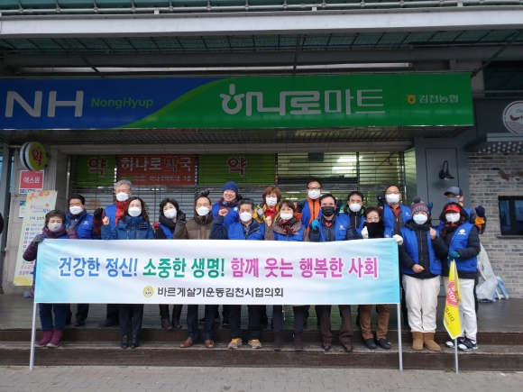 바르게살기운동중앙협의회는 매월 1일(공휴일은 다음날)을 ‘바르게살기 운동의 날’로 지정하고 매월 전국 동시 캠페인을 펼친다. 바르게살기운동 김천시협의회에서는 2월 주제인 생명존중 문화 조성을 위한 캠페인을 실시하였다. 또한, 안전하고 성숙한 교통문화 정착을 위해 교통 봉사활동을 추진하고 올바른 쓰레기 배출에 대한 홍보 활동도 병행했다.