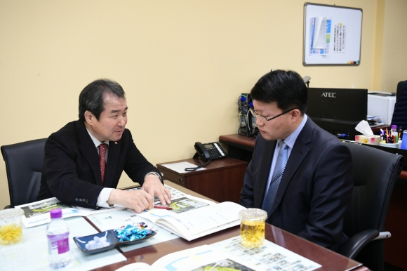 | 김충섭 시장은 지난 2월 6일 국가균형발전위원회 사무실에 직접 방문하여 진승호 기획단장과 김천시 주요사업을 건의하는 등 면담 시간을 가졌다.
