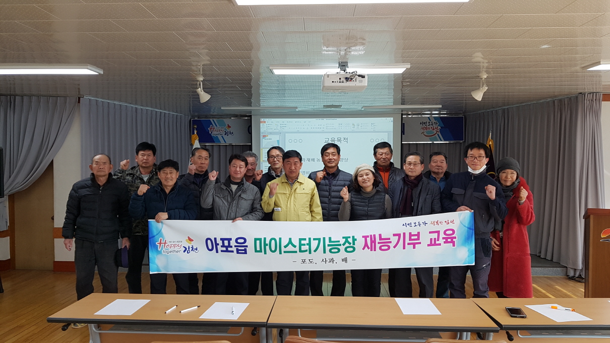 이정하 아포읍장은 지역 농가의 소득증진을 위하여 여러 방안을 고심하고 지역 주민들의 의견을 청취하여 품목별 교육을 결심하였다. 또한 재능기부를 흔쾌히 승낙해준 기능장들에게 고마움을 표했다. 이번 교육생들은 김천시 시민운동인 ‘Happy together 김천 운동’의 기본덕목인 “시행정에 적극 참여 하기” 항목의 적극적인 실천을 통하여 생활 속에서 뿌리내리는 ‘Happy together 김천 운동’이 되도록 온 힘을 다하여 노력 할 것을 다짐하였다.