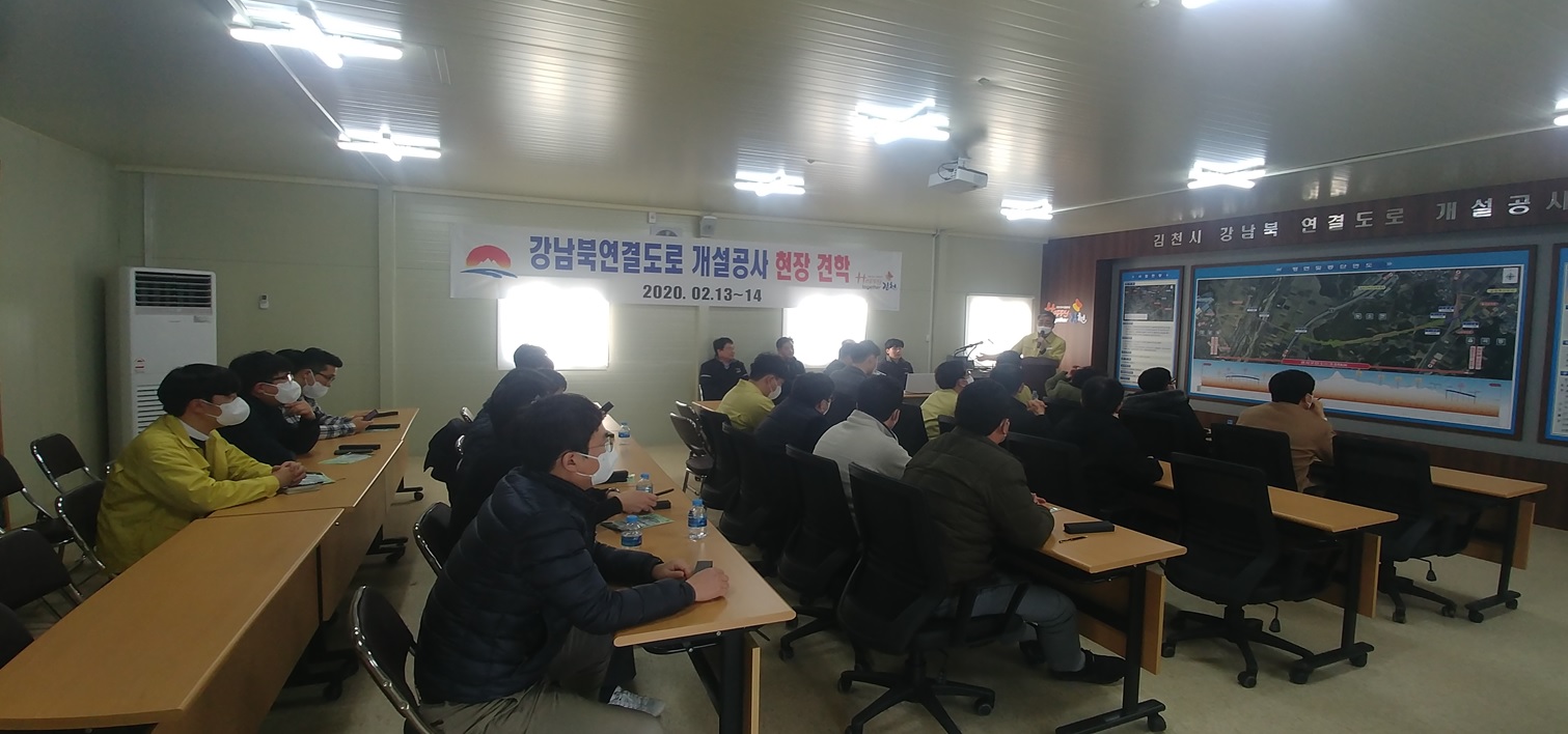 | 김천시에서는 일반산업단지, 대신지구, 혁신도시 등 선도적 개발구역간 간선도로망 구축을 위해 시행중인 강남북 연결도로 개설공사 현장에서 김천시 소속 토목직 공무원을 대상으로 교량시공 및 안전관리 교육, 현장견학을 실시하였다.