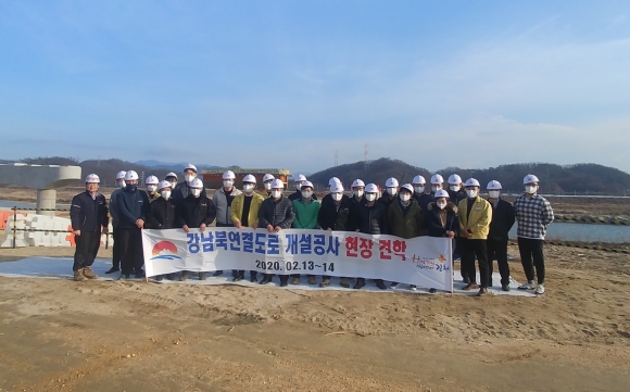 시설직 공무원 80여 명이 참석한 이번 교육은 2월 13일~14일 양일에 걸쳐 진행됐다. 강남북 연결도로 개설공사는 시청에서 혁신도시간 연결도로 건설사업 총연장 5.6㎞에 1,483억원을 투입하는 구간 중 3구간으로 총연장3㎞에 952억원이 투입되어 2023년 개설 예정이다. 금번 교육은 현재 시공중인 국가하천 감천을 횡단하는 교량에 대한 시공 과정에 대한 설명과 현장견학으로 진행되었다.