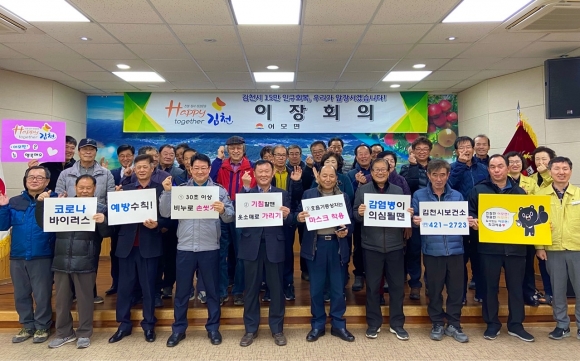 이날 회의에는 코로나바이러스 국민예방수칙 및 올바른 손씻기 영상을 상영하며, 경각심을 가질 수 있도록 현재 확진자 수와 검사진행수 등 주요증상에 대해 설명하는 시간을 가졌다. 이병헌 어모면장은 코로나바이러스 대표적인 예방법과 김천시선별진료소(3개소)를 안내했으며, 대중기관 및 의료기관 방문 시 마스크 착용을 강조하는 등 면민의 건강과 안전을 중시하며 설명했다. 더불어, 침체된 경기속에서도 우리시의 지역경제를 활성화 시킬 수 있는 김천사랑상품권 홍보와 산불예방에도 적극 동참해 주시길 부탁드렸다.