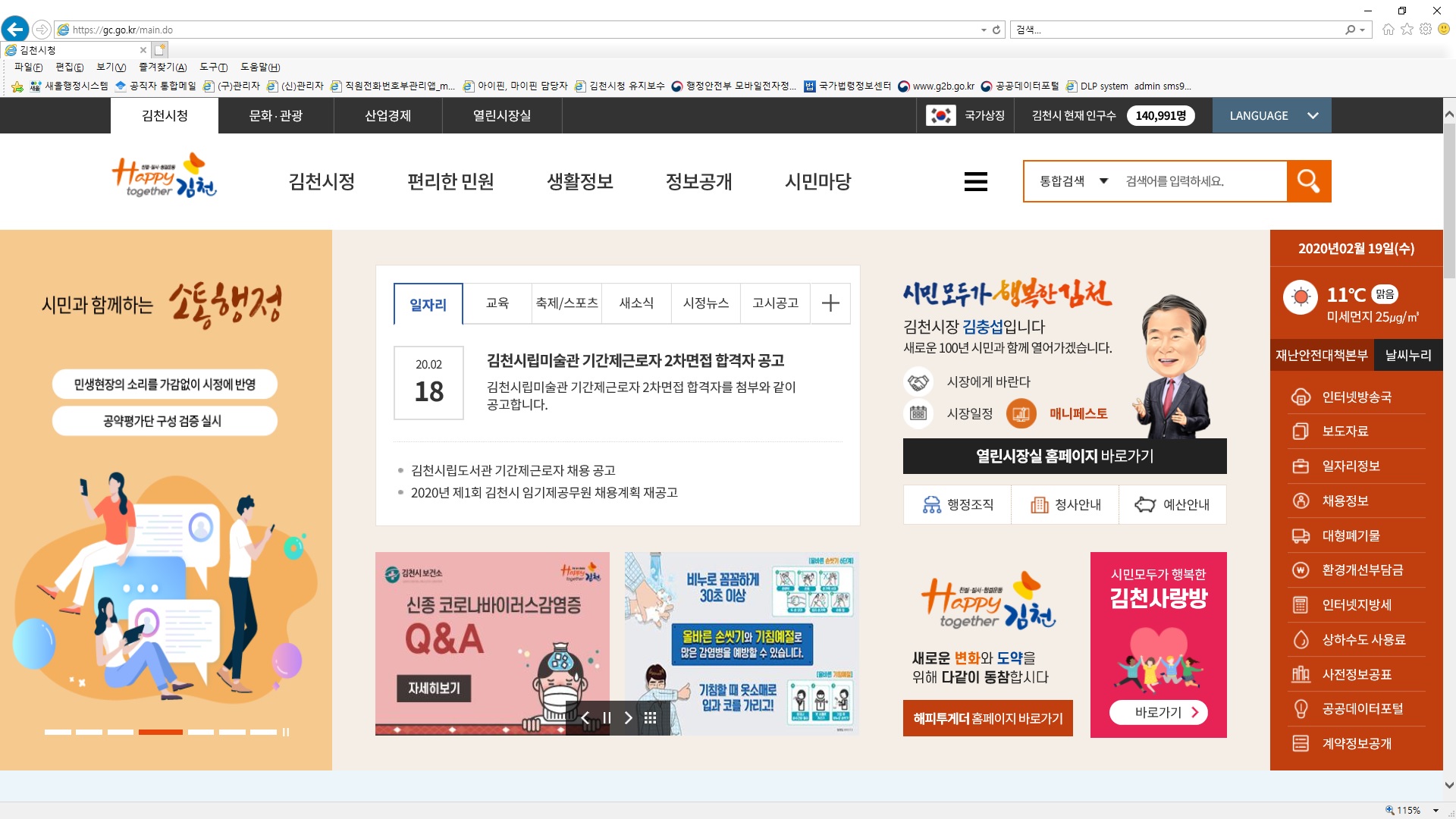 ‘시민 모두가 행복한 김천’조성을 위해 「Happy Together 김천운동」 홈페이지를 신설하고 시 대표 홈페이지와 연계, 시 행정에 대한 정보 및 메시지 알림 기능을 제공할 스마트 알리미 앱도 준비 중에 있다.
