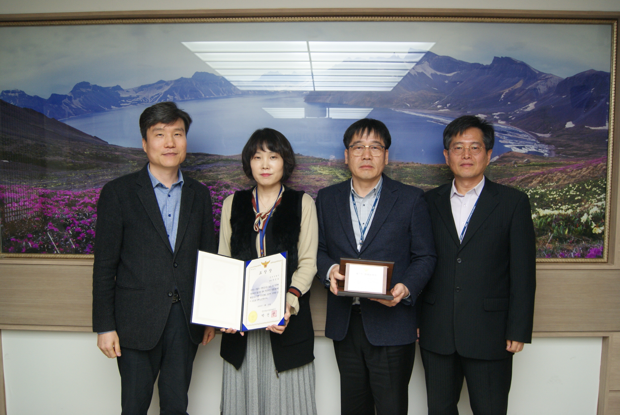 | 김천경찰서(서장 우지완)에서는 지난 2월 19일 경찰서 2층 열린방에서 우지완 김천경찰서장과 김우태 경북지방경찰청 청문감사담당관이 참석한 가운데 베스트 청렴동아리 시상식을 가졌다.