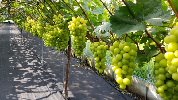 김천시 주요 수출 농산물은 포도, 새송이버섯, 양파로, 전체수출량은 전년대비 91% 증가하였으며, 포도의 경우 일반포도는 37% 증가한 반면, 샤인머스켓포도는 97% 증가하였다. 국내 샤인머스켓포도 재배면적의 급증으로 인하여 발생하는 공급과잉과 그에 따른 가격폭락이 우려되는 가운데 상품성을 갖춘 샤인머스켓포도는 해외소비자들의 입맛을 사로잡고 있는 수출 효자 종목으로, 샤인머스켓포도 수출은 내수시장 안정화와 농가소득 증대라는 두 마리 토끼를 잡을 수 있을 것으로 보인다.
