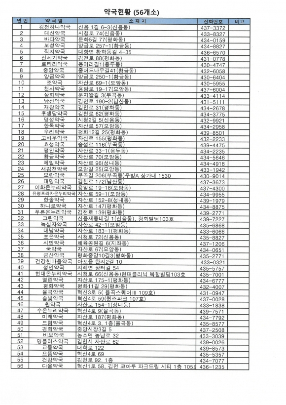 이에 김천시에서는 시민들이 마스크를 쉽게 구입할 수 있도록 관내 유통업체와 OEM방식으로 외부에서 제작하고 있는 업체에 협조를 요청하여 보건용 마스크가 원활히 공급될 수 있도록 최선을 다하고 있다. 김천시 관계자는 “보건용 마스크 공급이 원할 때까지 관내 56개소 약국에 있는 일반 면 마스크를 우선 구입하고 마스크를 착용할 때는 얼굴에 밀착해서 사용토록 권장하였다. 이에 56개소 약국 명단을 공개하였고 약국 방문전에 일반 면 마스크 보유현황을 확인할 것을 당부하였다.”고 밝혔다. |