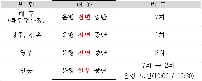 대구 경북 시외버스 일부 노선 운행 중단·감회