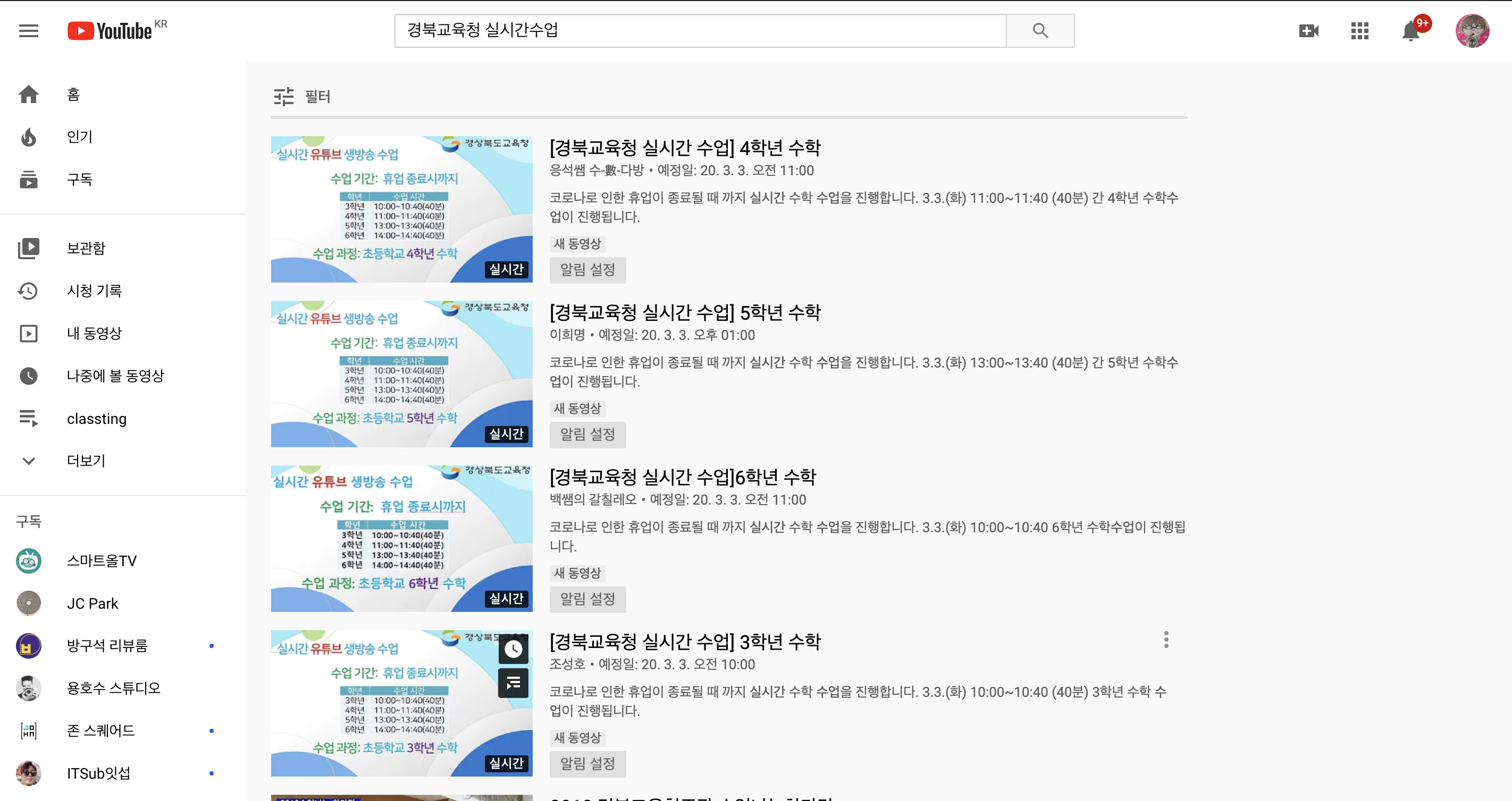 유튜브 생방송은 수학 수업을 오는 3일 10시부터 학년별로 각 1시간씩 제공하며 유튜브 검색창에경북교육청 실시간 수업‘을 검색해 참여하면 된다.