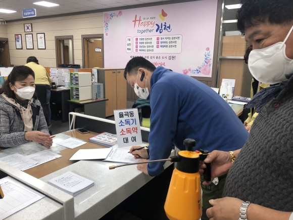율곡동, 코로나19 차단 위한 분무기 및 소독약 대여