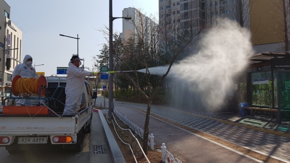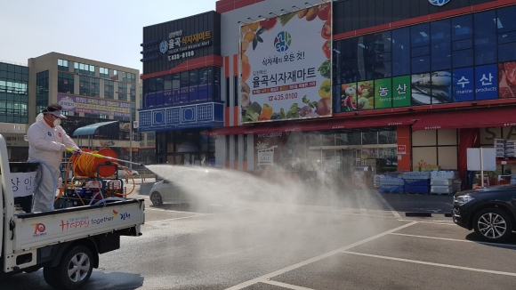 먼저 율곡동 시가지는 축산과의 협조를 받아 주기적으로 방역을 실시하고 있으며 인도 및 상가주변, 버스정류장 등은 율곡동상인회와 함께 정기적으로 소독을 실시하고 있다.