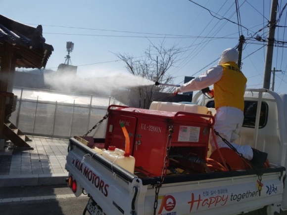 | 김천시 대항면에서는 최근 확산하고 있는 코로나19 확산방지를 위해 대대적인 방역활동을 실시하고 있다.