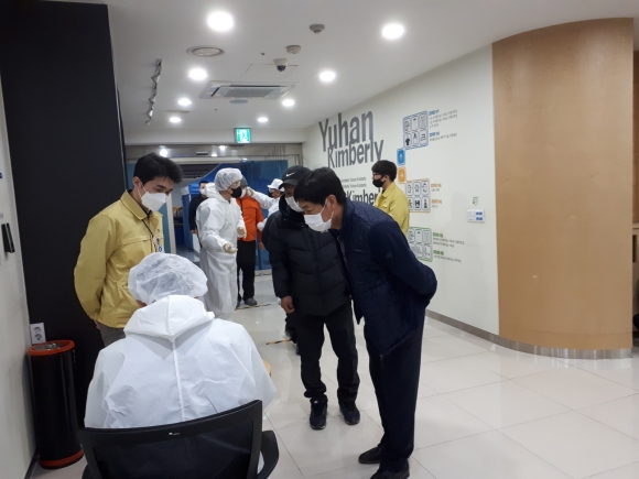 김천시 재난안전대책본부는 지난 25일부터 24시간 비상근무 체제로 돌입했다. 김충섭 김천시장을 재난안전대책본부장으로 실․국․소장과 부서장, 유관기관(김천경찰서, 김천소방서 등)에서는 발생될 수 있는 모든 상황에 대비하고 확산 방지를 위해 고군분투하는 모습이었다. 각종 다중집합시설을 폐쇄조치하고 관내 218개 종교시설을 공무원들이 일일이 찾아다니며 집회를 막는데 총력을 기울였다. 몇몇 시설의 불가피한 예배는 공무원들을 배치하고 마스크 착용과 손소독을 강력 권고했다. 특히, 보건소의 선별진료소가 빛났다. 지난 28일부터 시 보건소는 선별진료소를 드라이브 스루 방식을 채택해 의심환자가 차에서 내리지 않고 의료진 면담, 체온 측정, 검체 채취까지 10분 안에 처리하는 방식을 도입했다. 이는 교차 감염 방지, 대기시간 감소, 의료진 방호장비 소모를 줄이는 큰 효과를 본 것으로 나타났다.