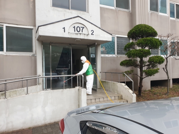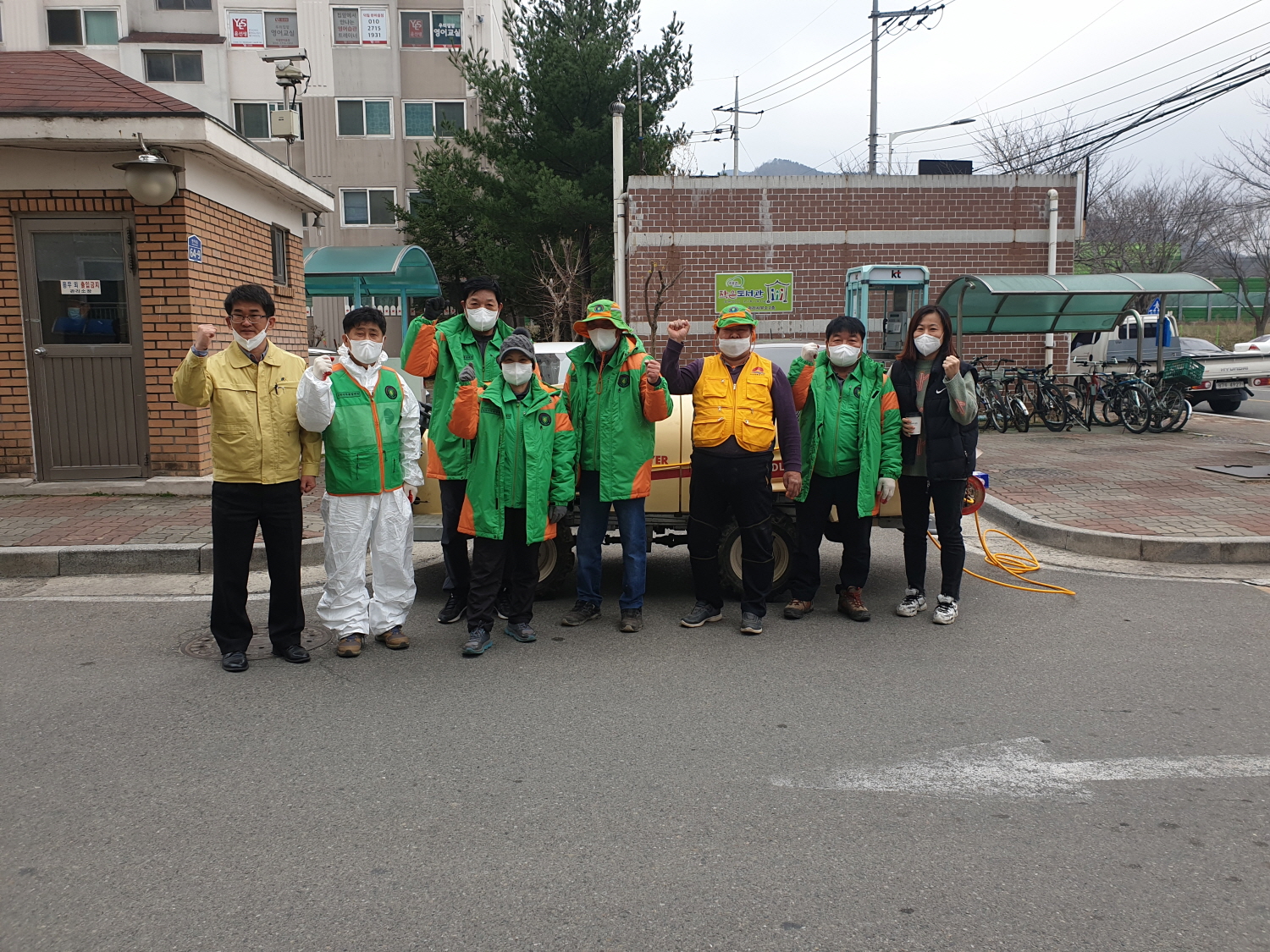 | 김천시 아포읍(읍장 이정하) 자율방재단은 코로나19 확산방지를 위해 지난 13일(금)에 관내 주민들이 많이 거주하고 있는 덕일한마음아파트 내 주요 시설을 돌며 방역작업을 실시하였다. 이번 방역은 아포읍 자율방재단 전 회원이 참여하였고, 주민들의 불안을 해소하기 위해 승강장, 쓰레기 집하장 등 주민들이 주로 이용하는 시설에 집중적으로 실시했다.