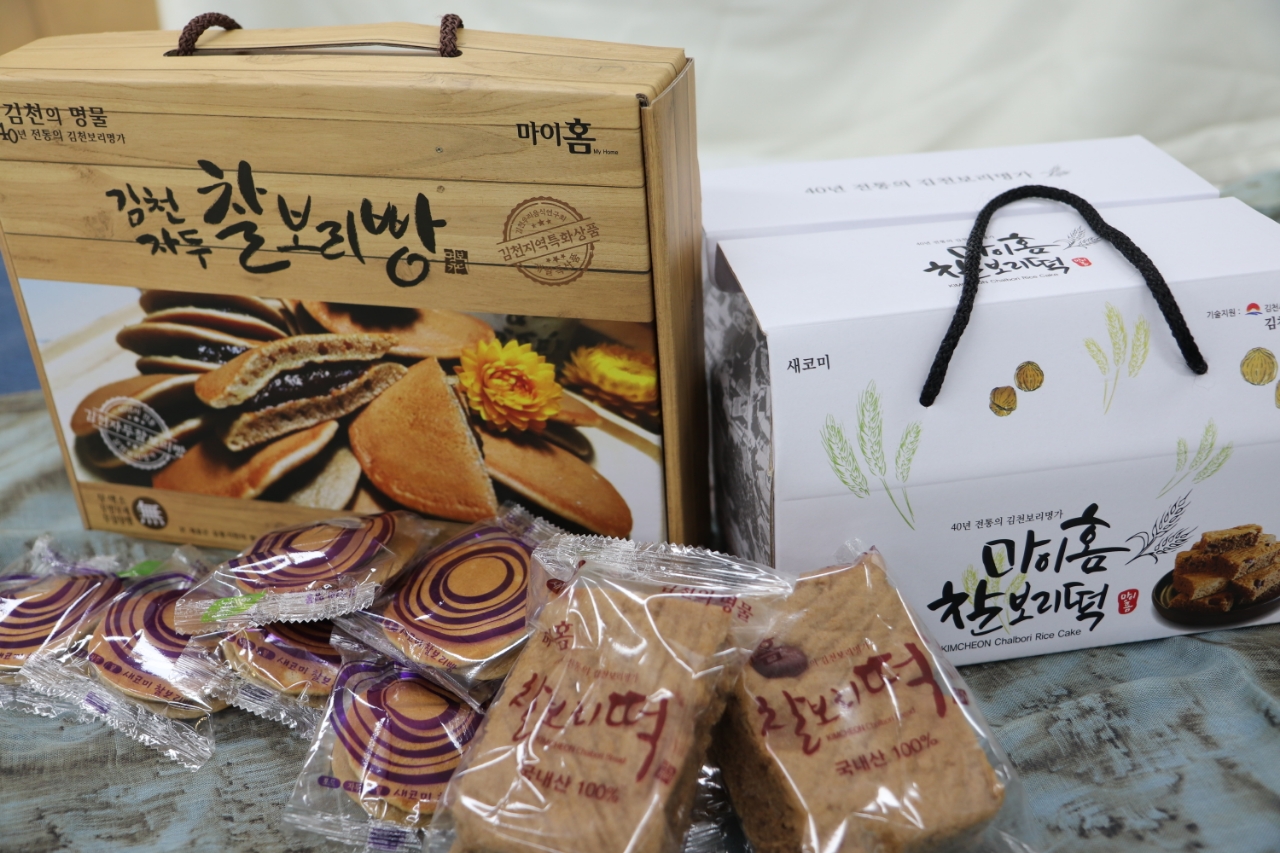 마이홈제과(대표 김점식)의 ‘김천자두 찰보리빵’, ‘마이홈 찰보리떡’은 40년 전통의 김천 대표 명물 빵으로, 김천시농업기술센터 기술 지원을 통해 포장 디자인과 상품성을 향상시켰다.‘마이홈 찰보리떡’은 모든 식재료를 국내산으로만 사용 하면서, 밀가루를 넣지 않고 적당한 찰기와 특유의 촉촉함을 살려 소화가 잘되며, 건강하면서도 간편해 식사대용으로 먹기가 좋다.