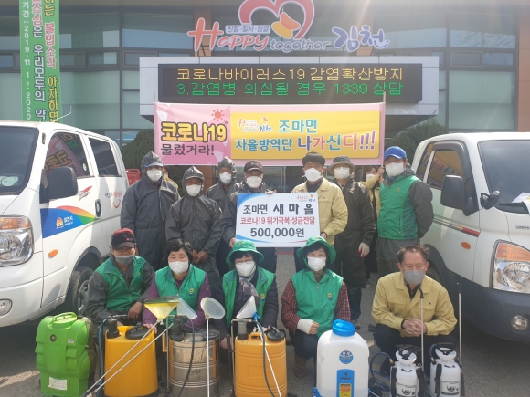 조마면 새마을지도자회에서는 성금전달과 더불어 예방과 확산 차단을 위해 다중이용시설인 버스승강장, 유관기관, 마을회관 입구, 식당 등 다중이용시설에 지난 13일 방역 활동을 시작으로 정기적으로 실시할 계획이다.