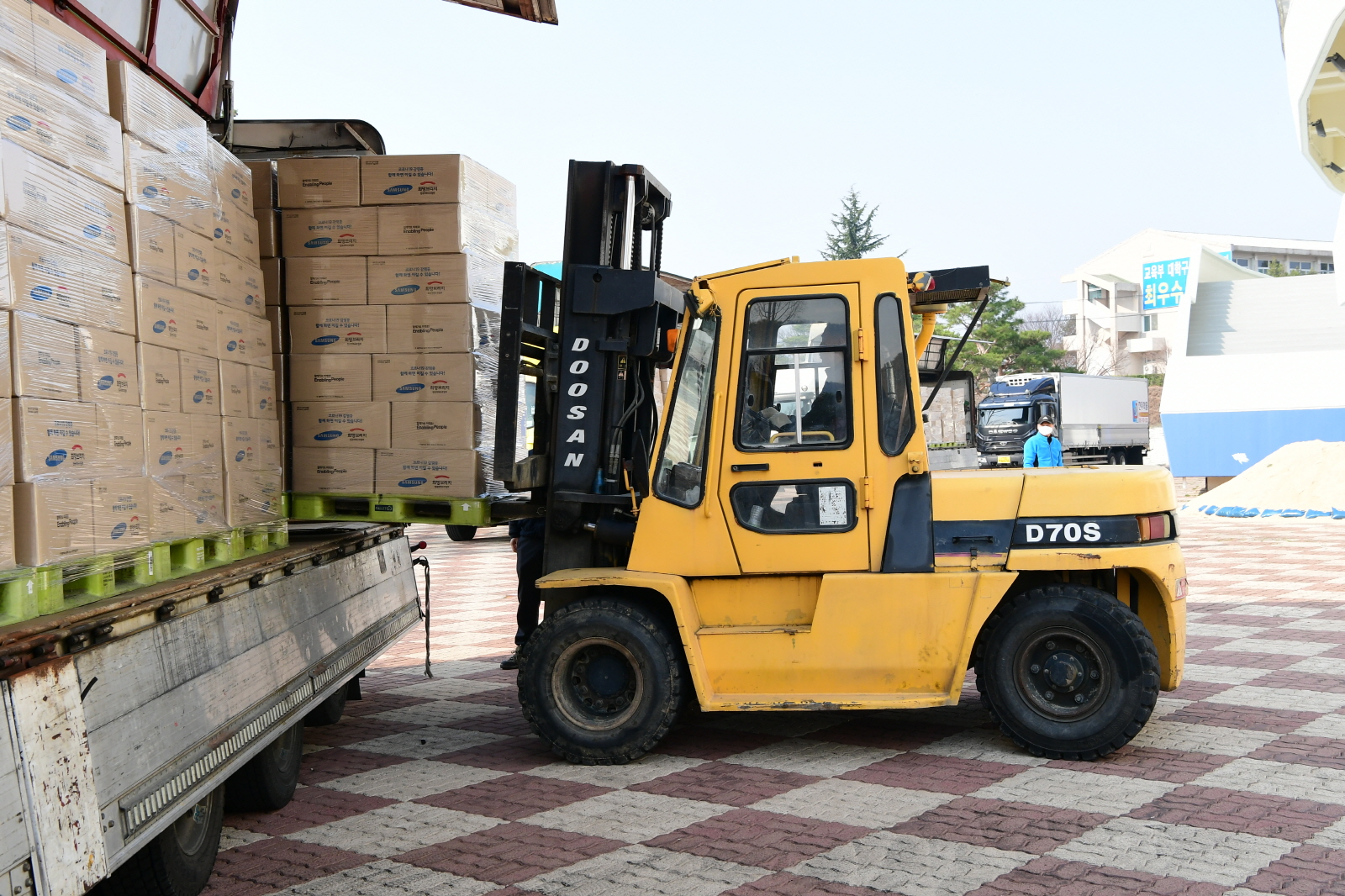 이날 종합운동장에서 수령한 식료품 키트는 11톤 트럭 5대(약 51톤)에 해당하는 분량으로 군병력, 공무원 등 40여명이 동원되어 현장에서 상·하차 및 분류작업을 마치고 곧 바로 전달지로 출발하였다.