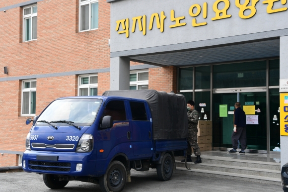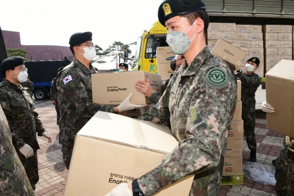 물품 배부는 50사단 육군현장지원팀의 협조를 받아 30명의 군 병력을 투입, 총 5대의 군용트럭으로 나누어 19일(목)~20일(금)까지 2일간에 걸쳐 각 읍면동, 코호트 격리 사회복지시설 53개소, 김천소년교도소에 전달하게 된다.