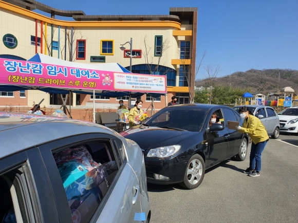 | 김천시(시장 김충섭)은 3월 20일부터 육아종합지원센터 장난감 대여 드라이브스루를 운영하였다.