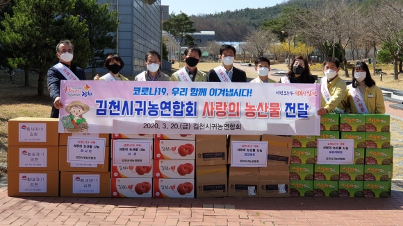 | 김천시귀농연합회는 코로나19 확산으로 농산물 소비가 급격히 위축되어 어려움을 겪고 있는 관내 농가를 돕고 코호트 격리된 사회복지시설을 위문하기 위해 발 벗고 나섰다.