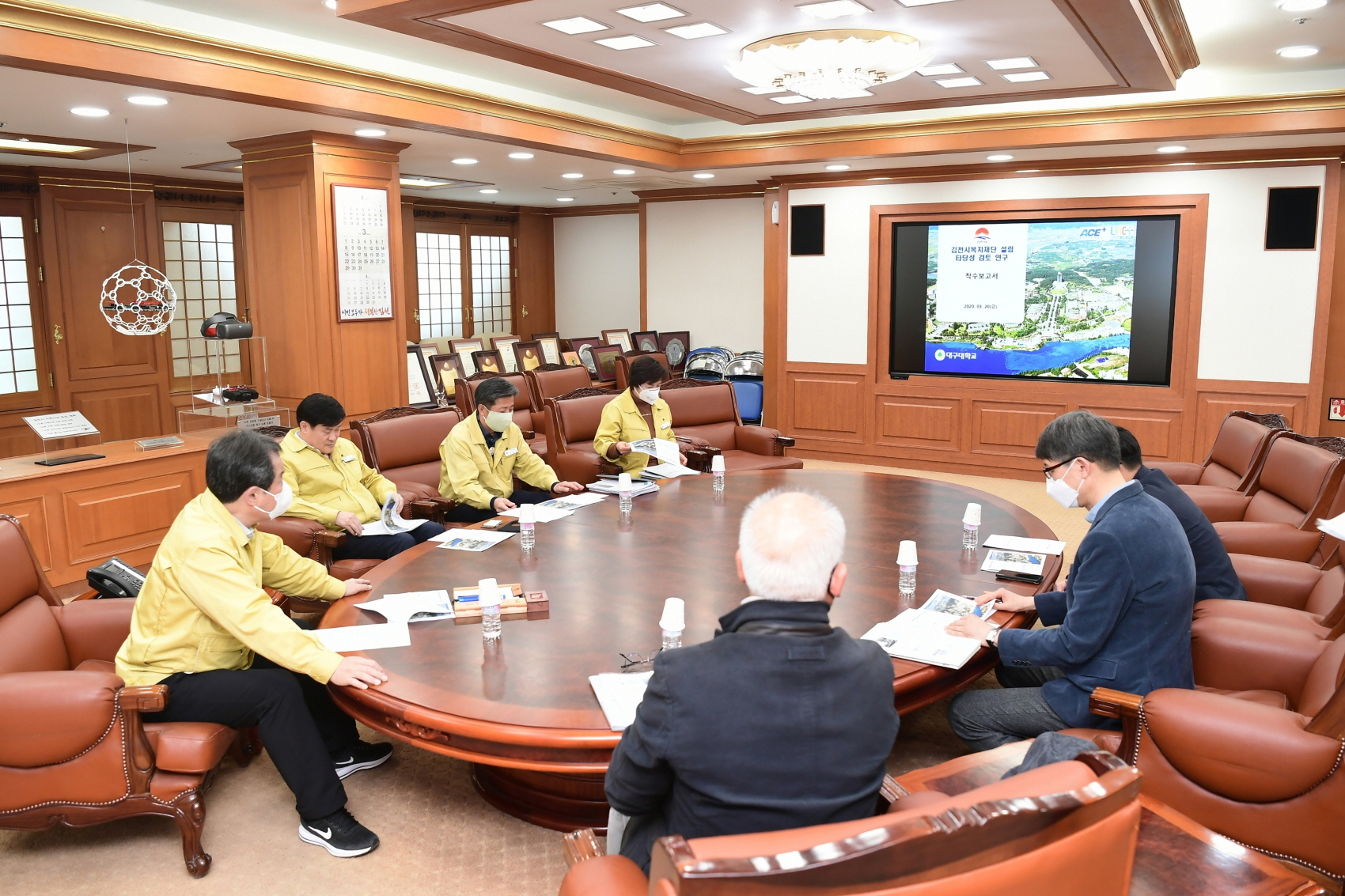 | 김천시는 지난 3월 20일 접견실에서 『김천시복지재단』설립타당성 연구용역 착수보고회를 개최하였다. 이날 보고회는 김충섭 김천시장을 비롯한 시 관계자와 용역사 대구대학교산학협력단장 박태영 교수 등 9명이 참석했으며, 용역사의 착수보고, 질의응답 및 의견수렴 등의 순으로 진행했다.