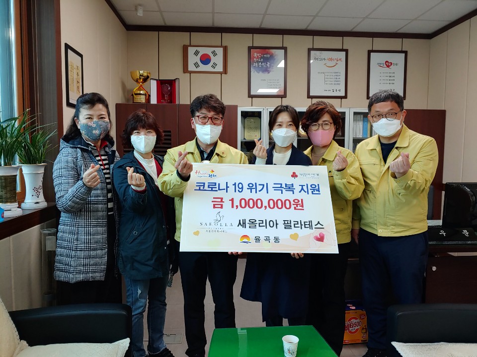 이우문 동장은 “코로나 19로 인한 지역경기 침체로 지역 소상공인의 어려움은 이루 말 할 수 없다.”며 “그럼에도 불구하고 코로나 19로 어려움에 쳐 해 있는 이웃을 위해 사용해 달라고 100만원을 쾌척한 새올리아 필라테스 이효란 대표님에게 감사의 말씀을 전한다.”고 했다.
