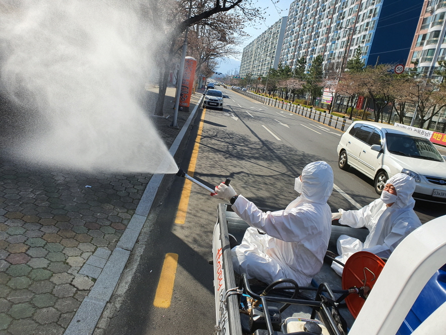상가 및 주택가 소독 및 사회적 거리두기 홍보