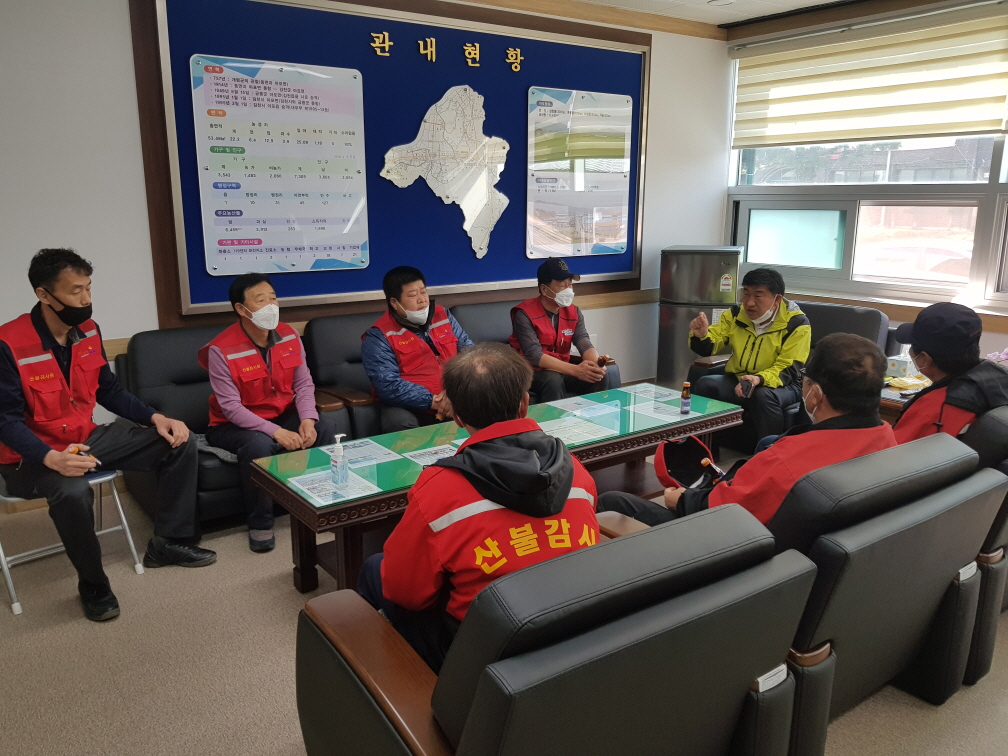 이날 이정하 읍장의 산불예방을 위한 당부말씀, 산불예방 교육 순으로 진행되었으며, 산림 내 소각행위 증가와 노령인구 증가 등 산불발생 가능성이 높다는 현실적인 문제를 설명하면서 감시원들의 역할이 중요함을 강조했다.