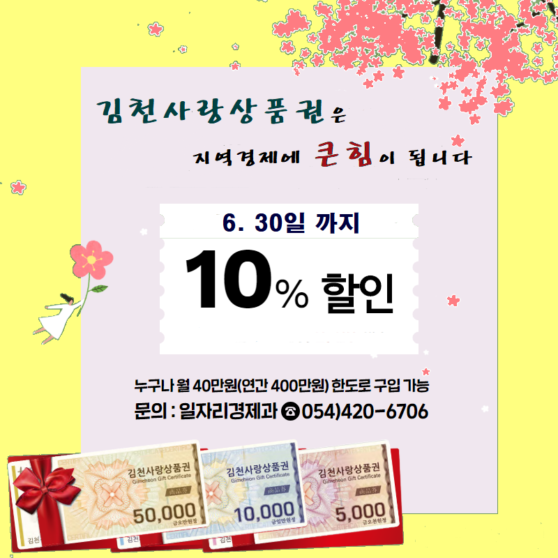 김천사랑 상품권 6월말까지 10% 특별할인 기간 연장