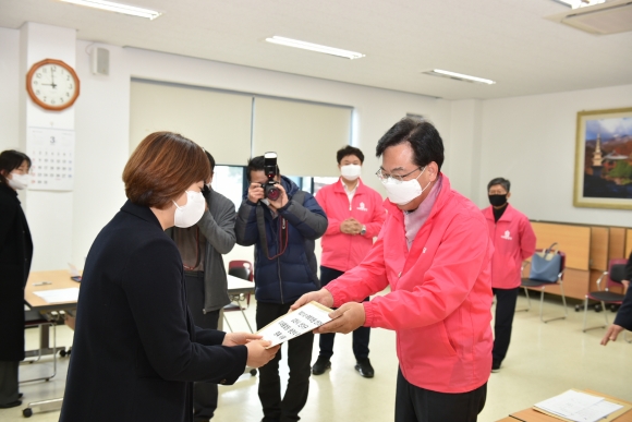 | 송언석 국회의원은 26일 오전 김천시선관위를 방문해 21대 총선 후보자 등록을 마쳤다. 앞서 6일 미래통합당 공천관리위원회에서 단수 공천을 확정하고 국회의원 선거를 준비해왔다.