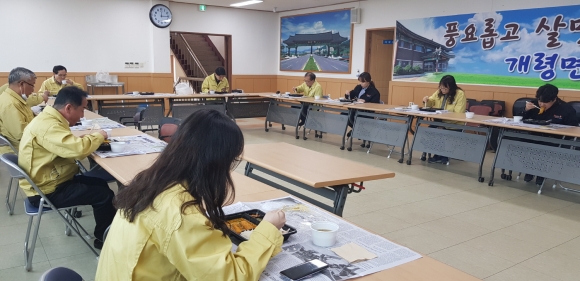 개령면사무소 직원과 구내식당을 함께 이용하는 관공서 직원을 포함해 18명은 매주 수요일을 구내식당 휴무일로 정하고 관내 업체에 주문한 도시락으로 점심을 먹었다. 또한, 공동급식을 통한 코로나19 감염을 최소화하기 위해 식사 중 마주보고 앉지 않기로 사회적 거리 두기를 실천했다. 휴일 비상근무 시에도 근무자에게 점심에 도시락을 제공할 예정이다.