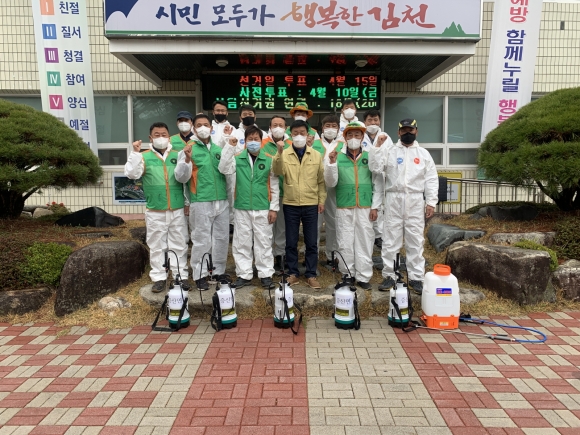 | 김천시 증산면(면장 김영욱) 자율방재단(단장 이정희)에서는 회원들과 함께 코로나-19 바이러스 확산 방지를 위해 지역 내 주요상가와 관광시설 등을 일제 소독 하였다.