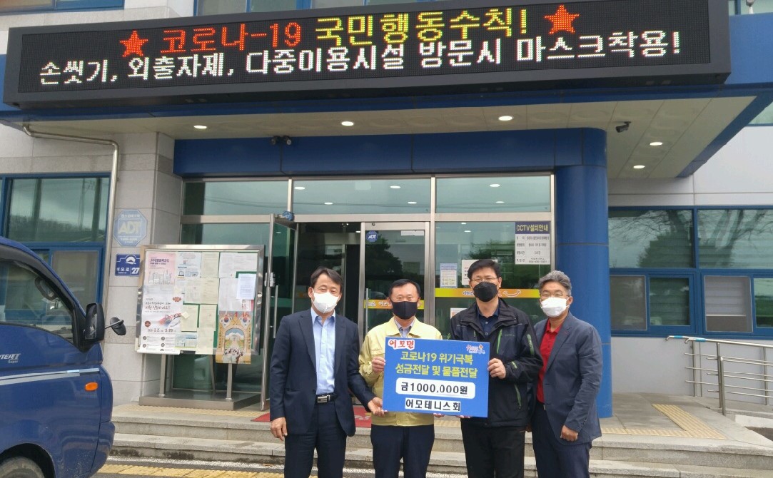 | 지난 27일 어모테니스회(회장:정영훈)에서 어모면사무소를 방문하여 코로나19로 인해 계속되는 경기침체로 어려움을 겪고 있는 이웃들을 위해 성금 100만원을 전달했다.