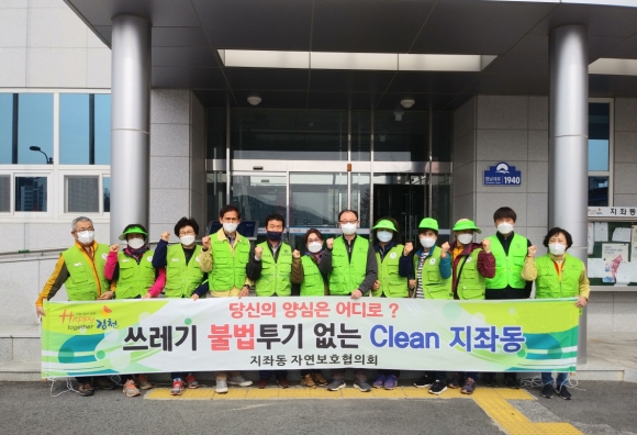 지좌동 자연보호협의회에서는 매월 자체적으로 청결활동을 하여 왔으나, 지난 1월말부터 코로나-19 확진자 발생 후 지역사회로 확산되는 것을 막기 위하여 단체 활동 자제, 사회적 안전거리두기 실천으로 활동을 중지하였다. 그러나 코로나–19로 인하여 지역사회가 많이 침체되고 활기를 잃어 따뜻한 봄날을 맞아 지역민들이 걷기에 적합하고 산책을 마음 놓고 할 수 있는 분위기를 만들어 주고자 자연정화 활동 실시와 함께 산책시 애완동물을 동반하는 주민들에게 펫티켓에 대한 홍보도 함께 하였다.