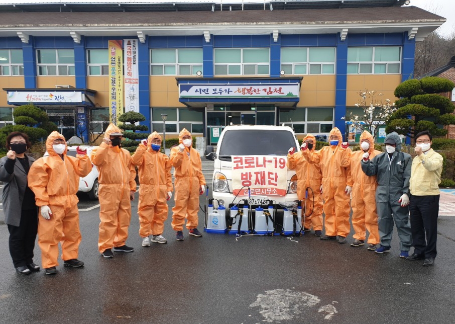 | 김천시 감문면 이장협의회(회장 송진호)는 지난 27일, 지역주민의 불안감을 해소하고 모두가 한마음으로 코로나-19 예방에 힘을 모으자는 의미에서 일제소독을 진행했다.